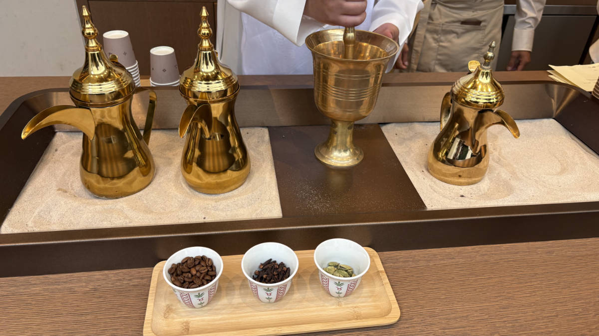 パビリオンの建物を出ると、熱せられた砂でコーヒーを温めて、淹れてくれるショップがあります。