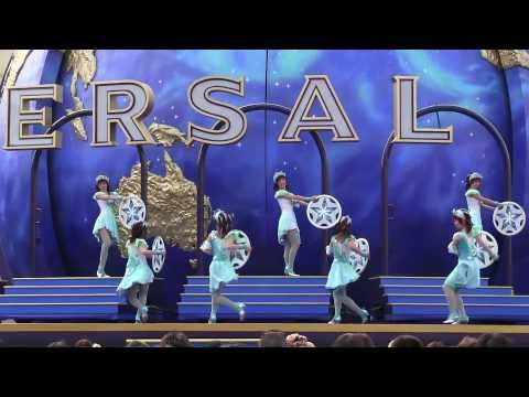 大きな地球儀があるステージが登場。地球儀が左右に開くと中からは、星へ続く階段のステージが登場し、中から多くのダンサーが登場し
